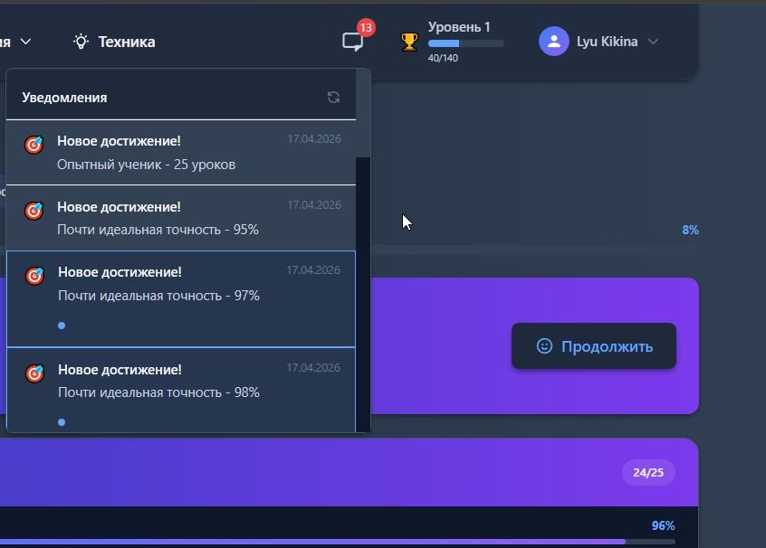Этот отзыв я сейчас печатаю слепым методом. Обучение начала не с нуля, восстанавливала утраченный навык. Что особенно ценно: подробная статистика, реальные тексты, удобный интерфейс без отвлекающих элементов, видна текущая скорость. Рекомендую всем, кто хочет перестать смотреть на клавиатуру — это один из немногих сервисов, где прогресс ощутим уже на 4-й день.